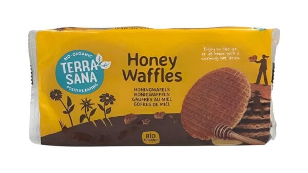 Βάφλες Μέλι bio, η γλυκιά απόλαυση που θυμίζει Ολλανδία. Δύο λεπτές βάφλες ενωμένες με πλούσια γέμιση βιολογικού μελιού. Συνοδεύουν τέλεια το τσάι και τον καφέ σας. Βάλτε τες στο καλάθι!