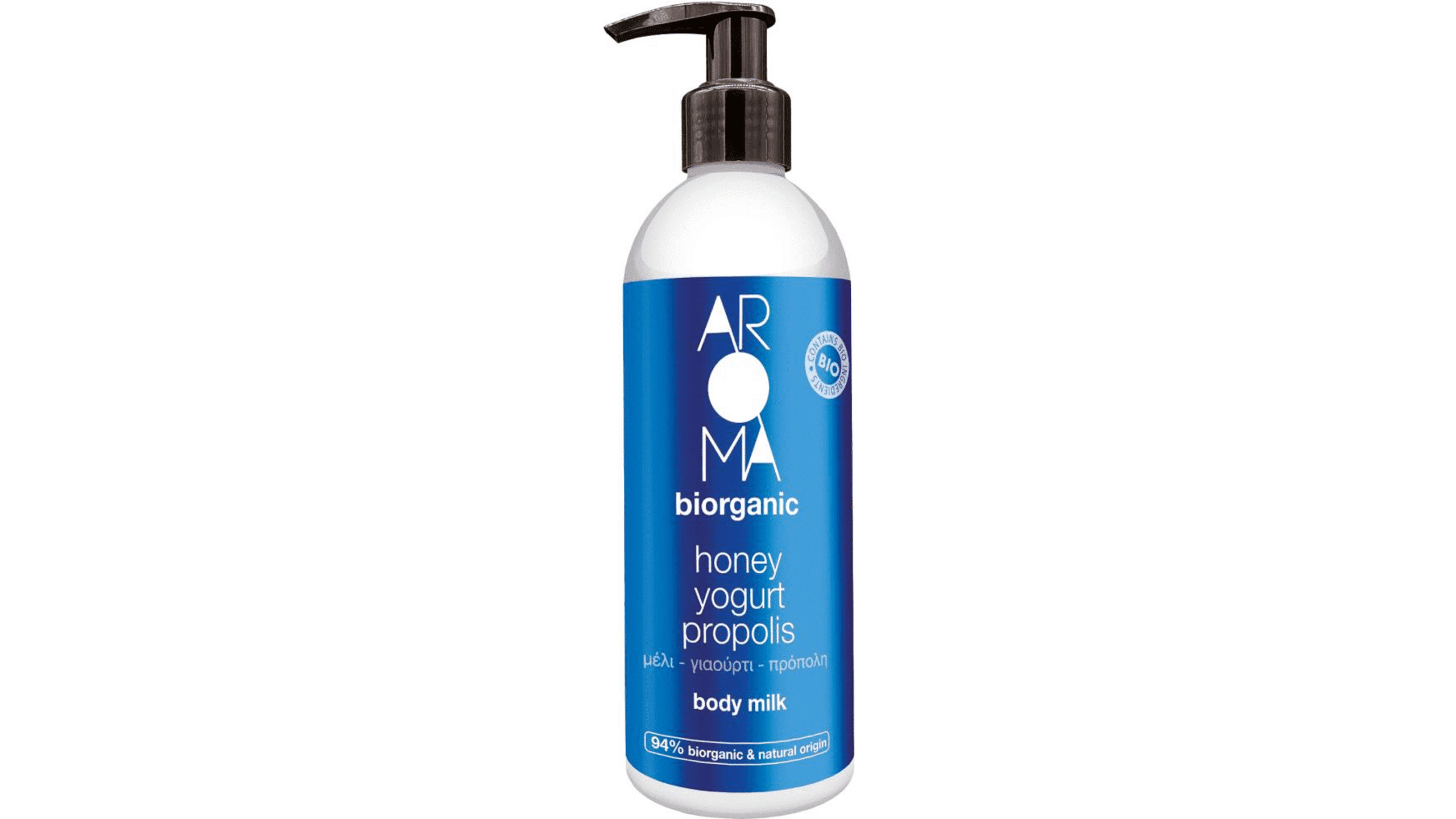 Aroma Body Milk Honey Yogurt Propolis Bio, βιολογικό γαλάκτωμα σώματος. Ο συνδυασμός μελιού, γιαουρτιού και πρόπολης προσφέρει εντατική ενυδάτωση και ελαστικότητα. Απορροφάται γρήγορα χωρίς να λιπαίνει, αφήνοντας το δέρμα βελούδινο. Βάλτε το στο καλάθι!